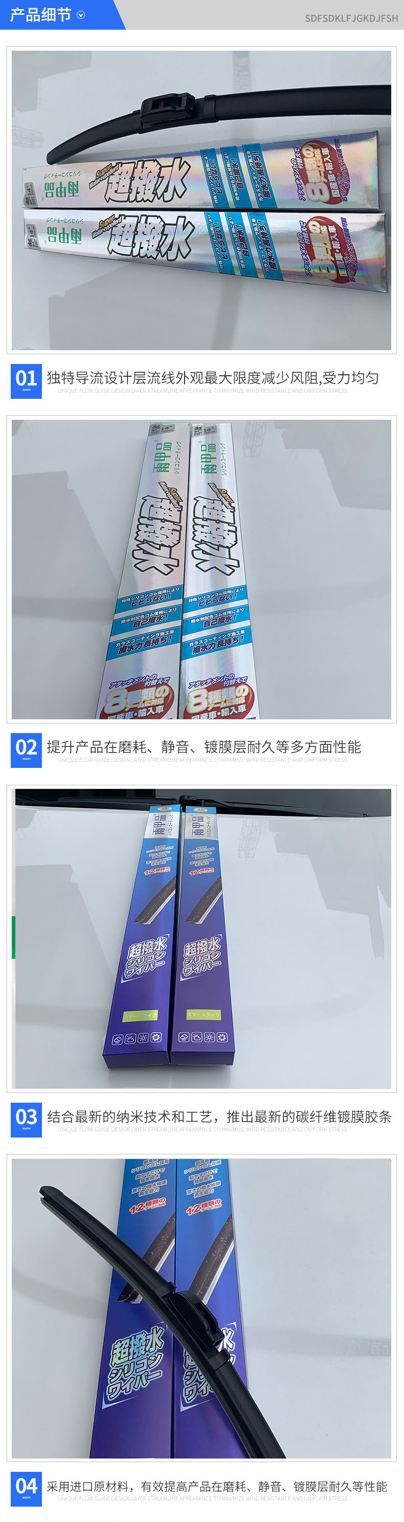新視途汽車配件有限公司針對汽車售后市場,潛心專業專注的研究硅膠鍍膜技術,專注改良、開發多款配方和工藝,多年來根據不同雨刷款型的需要,推出多系列通用和專用鍍膜膠條,目前結合最新的納米技術和工藝,再次推出最新的碳纖維鍍膜膠條,且采用德國進口原材料,有效提高產品在磨耗、靜音、鍍膜層耐久等性能,是普通雨刷數倍。